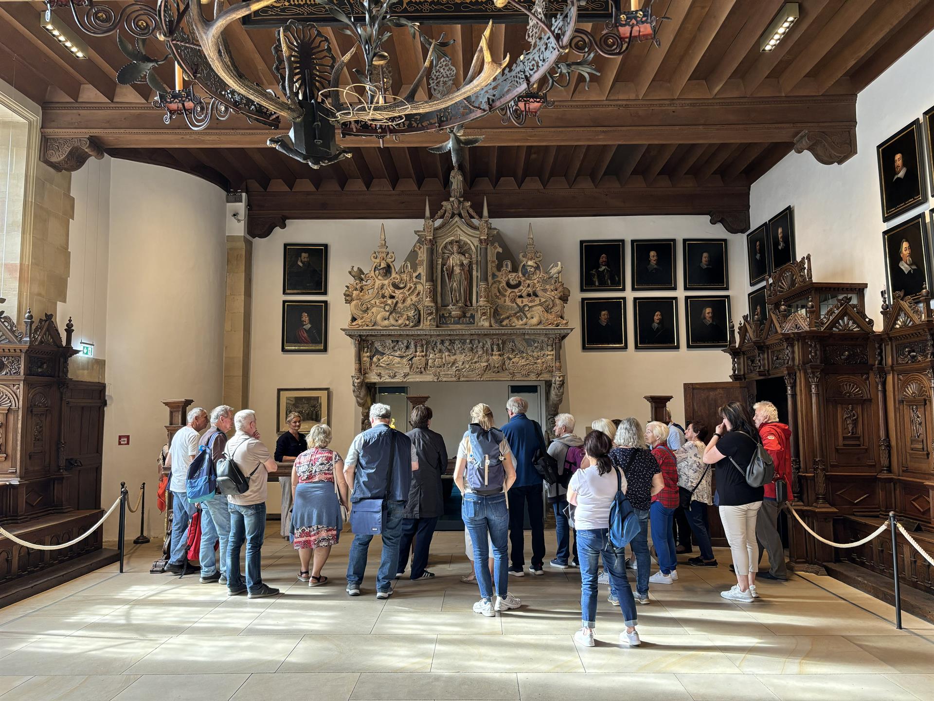 Die Bürgermeisterin Frau Stähler ließ es sich nicht nehmen, die Gäste persönlich zu begrüßen und mit einem Vortrag im Friedenssaal die historische Bedeutung des Rathauses zu würdigen.